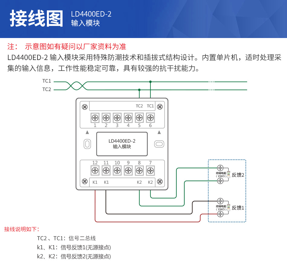 5、LD4400ED-2輸入模塊可檢測無源開關接點線路斷線故障。