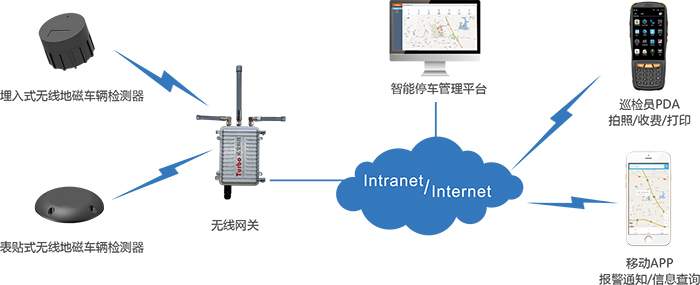 自主研發的智能無線地磁停車系統采用廣域無線物聯網系統,可實現傳輸距離1公里,一個基站可覆蓋1000個車位,改變了傳統的停車管理方式,終端采用電池充電,無需挖槽和布線,較大程度上較低了產品成本和施工成本。